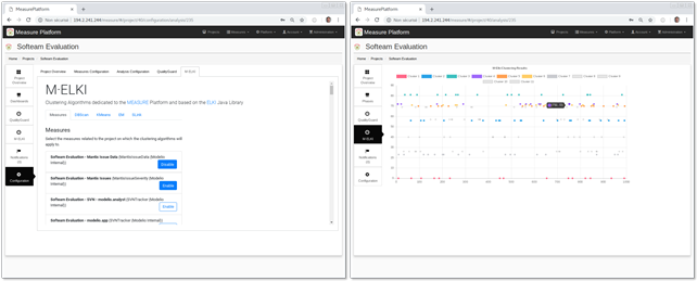 The last picture show how to visualize M·ELKI clustering analysis results. The latter are also backed into the MEASURE Platform ElasticSearch database.